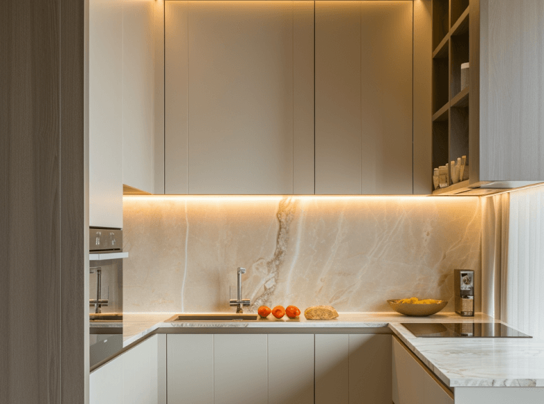 Aneks kuchenny z pełnym wyposażeniem(płyta, lodówka, piekarnik, ekspres do kawy, naczynia, stół z krzesłami)